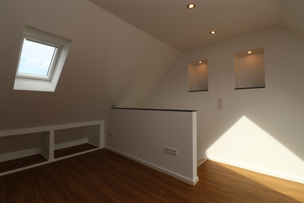 Wir verwandeln Ihr Dachgeschoss in einen hellen, wohnlichen Raum. Dabei achten wir auf Wärmedämmung, Schallschutz und eine ansprechende Gestaltung – perfekt für Wohnen oder Arbeiten.